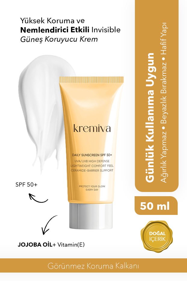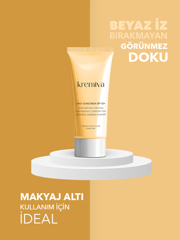Ve bakım rutininin en tartışılmaz, en kritik adımı: Güneş Koruması. Cilt yaşlanmasının yaklaşık %80'inin güneşin yaydığı UV ışınlarından kaynaklandığı bilimsel olarak kanıtlanmıştır. Sadece yaz aylarında değil, bulutlu havalarda ve kışın dahi cildimiz UVA (yaşlandırıcı) ve UVB (yakıcı) ışınlarına maruz kalır. Özellikle Glikolik Asit veya C Vitamini gibi aktif içerikler kullanıldığında, cildin güneşe karşı hassasiyeti artabileceği için koruma daha da önem kazanır. Kremiva Güneş Kremi SPF 50+, yeni nesil filtre teknolojileri kullanılarak geliştirilmiştir. Piyasadaki pek çok güneş kreminin aksine, ciltte beyaz iz, yapışkanlık veya yağlanma hissi bırakmaz. Hızla emilen hafif formülü, cildi güneş yanıklarına, güneş lekelerine ve fotoyaşlanmaya karşı yüksek düzeyde korur. İçeriğindeki bakım yapan bileşenler sayesinde sadece korumakla kalmaz, aynı zamanda cildi nemlendirir.